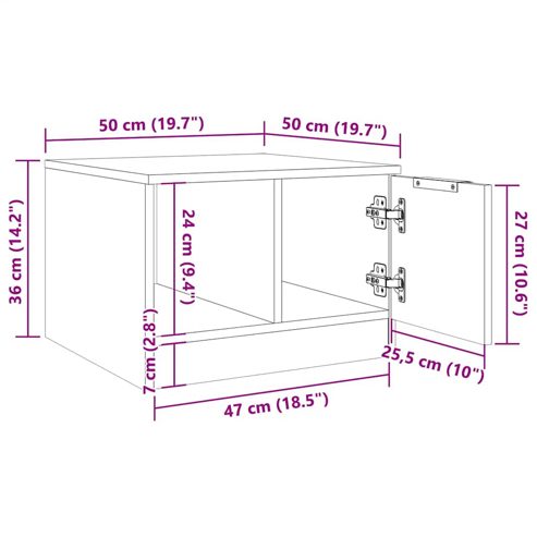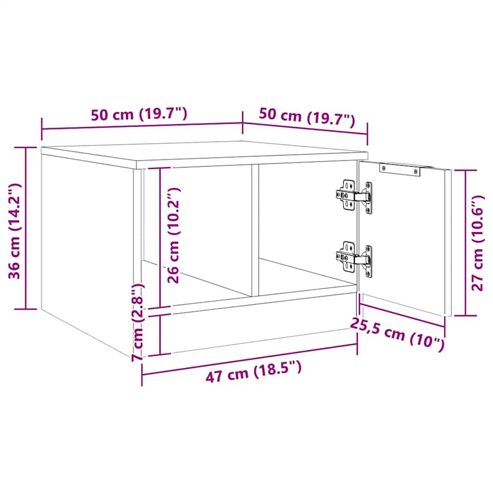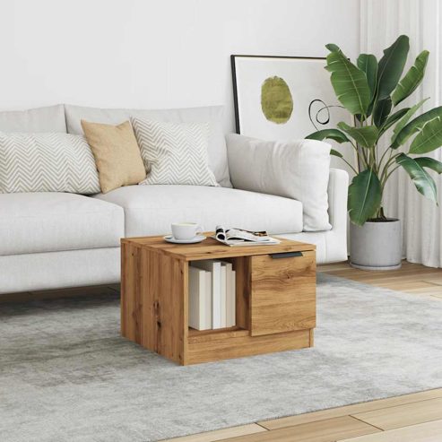Dieser einzigartige Kaffeetisch ist der perfekte Ausgangspunkt für entspannte Stunden mit Familie und Freunden! Starkes und langlebiges Material: Holzwerkstoff ist ein langlebiges und robustes Material mit einer glatten Oberfläche, das gegen Feuchtigkeit, Verformung und Rissbildung beständig ist, wodurch es eine zuverlässigen Wahl für die Herstellung von Möbeln ist.Reichlich Stauraum: Dieser Beistelltisch bietet reichlich Platz, um deine Zeitschriften, Bücher, DVDs, Fernbedienungen und andere Kleinigkeiten gut organisiert und griffbereit aufzubewahren.Stabile und robuste Tischplatte: Die stabile Tischplatte bieten den idealen Platz für Getränke oder andere Sachen, die du griffbereit haben möchtest.Praktische Tür: Hinter den Türen kannst du kleinere Gegenstände verstauen, und so einen sauberen und aufgeräumten Raum genießen.Pflegeleicht: Dank seiner glatten Oberfläche lässt sich der Sofatisch mit einem feuchten Tuch leicht reinigen und erfordert wenig Pflege. ** Farbe: Artisan-Eiche ** Material: Holzwerkstoff ** Abmessungen: 50 x 50 x 36 cm (B x T x H) ** Maximale Belastbarkeit (insgesamt): 60 kg ** Zusammenbau erforderlich: Ja