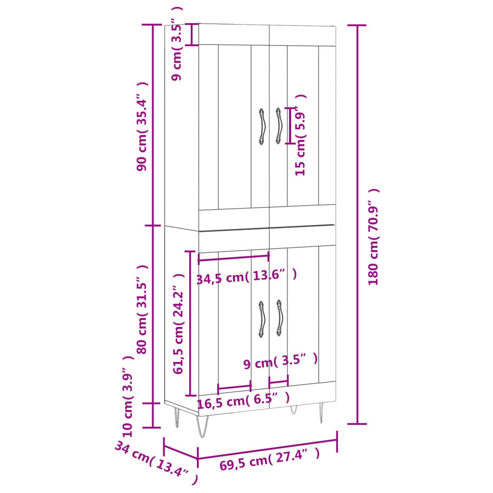 vidaXL Highboard Sonoma-Eiche 69,5x34x180 cm Holzwerkstoff