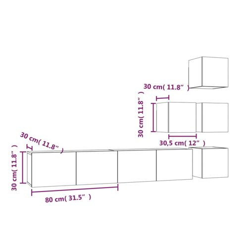 Diese TV-Schränke werden an der Wand befestigt und zeichnen sich durch ein elegantes und klassisches Design aus. Die Wandschränke sind eine dekorative und praktische Ergänzung zu deiner Einrichtung. Langlebiges Material: Holzwerkstoff ist ein Material von außergewöhnlicher Qualität mit glatter Oberfläche, das sich durch Festigkeit, Stabilität und Feuchtigkeitsbeständigkeit auszeichnet.Dekoratives Design: Die TV-Hängeschränke verwandeln eine leere Wand in ein dekoratives Element.Reichlich Stauraum: Die TV-Hängeschränke bieten ausreichend Platz, um alle Arten von kleineren Gegenständen wie Schlüssel, Notizblöcke, Stifte und anderen Schnickschnack zu verstauen.Einfache Reinigung: Der Hängeschrank ist mit einem feuchten Tuch leicht zu reinigen. Hinweis:Schrauben und Dübel für die Wandbefestigung sind nicht enthalten. Suchen und verwenden Sie die für Ihre Wände geeigneten Schrauben und Dübel. Wenn Sie unsicher sind, suchen Sie professionelle Hilfe. Lesen und befolgen Sie jeden Schritt der Anleitung sorgfältig.Jedes Produkt wird mit einer Montageanleitung in der Verpackung für eine einfache Montage geliefert. ** Farbe: Sonoma-Eiche ** Material: Holzwerkstoff ** Abmessungen (S): 30,5 x 30 x 30 cm (B x T x H) ** Abmessungen (L): 80 x 30 x 30 cm (B x T x H) ** Lieferung umfasst: ** 4 x TV-Schrank(S) ** 2 x TV-Schrank (L)