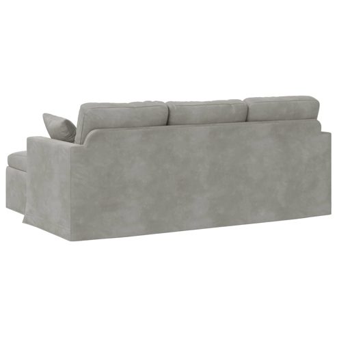 Dieses moderne Sofa bringt frischen Wind in dein Zuhause. Mit seinem schicken Design und den praktischen ergonomischen Eigenschaften gibt es jedem Raum einen Hauch von Eleganz. Es kombiniert nützliche Funktionen mit einem stilvollen Look, der sich vielseitig einsetzen lässt. Dank der glatten Oberfläche kannst du nach einem stressigen Tag herrlich entspannen; es wird zum perfekten Mittelpunkt für ruhige Momente oder gesellige Runden. Hochwertige Materialien: Das Sofa hat einen stabilen Metallrahmen, der für Langlebigkeit sorgt, und die elegante Samtoberfläche sieht nicht nur toll aus, sondern ist auch atmungsaktiv und praktisch. Inklusive Komponenten: Es hat armlehnen aus Holzwerkstoff, die guten Halt bieten, plus Kissen mit Schaumfüllung für zusätzlichen Komfort. Die Kombination mit den glatten Kunststofffüßen sorgt für ein traditionelles und modernes Flair. Robuste Konstruktion: Der Rahmen ist stabil und solide, was Sicherheit bei der Nutzung bietet. Jedes Teil ist sorgfältig ausgewählt, um dir die richtige Haltung und den besten Komfort zu garantieren. Empfohlene Verwendungen: Das Sofa ist perfekt für Wohnzimmer oder Schlafzimmer, da es sowohl Flexibilität als auch Stil bietet. Egal ob du entspannst oder Gäste bewirtest, es kommt immer gut an. Pflege & Wartung: Die Pflege ist einfach: Wisch es mit einem trockenen Tuch ab, um sein schönes Aussehen zu erhalten. Regelmäßige Pflege sorgt dafür, dass dieses tolle Stück lange schön bleibt. ** Farbe: Hellgrau ** Beinfarbe: Schwarz ** Upholstery material: Samt ** Füllmaterial: Schaum, Faser ** Armlehnenmaterial: Holzwerkstoff ** Beinmaterial: Kunststoff ** Gesamtabmessungen: 198 x 134 x 80 cm (B x T x H) ** Sitzbreite: 180 cm ** Sitztiefe: 52 cm ** Armlehnenhöhe vom Sitz aus: 16 cm ** Max. Gewicht: 110 kg/Sitz ** Langlebig ** Ergonomisches Design ** Robuste Bauweise ** Stabiles und robustes Gestell ** Bequemer Sitzpolster ** Nur für den Innenbereich ** Montage erforderlich: Ja ** Lieferumfang: ** 1 x Sofa