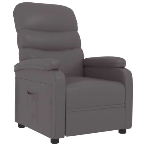 Lehne sich zurück und entspanne sich in diesem äußerst bequemen Relaxsessel! Manuelle Liegefunktion: Der Sessel kann manuell in 3 Positionen verstellt werden, so dass die Rückenlehne und der Fußteil je nach Bedarf eingestellt werden können.Bequemes Sitzerlebnis: Der dick gepolsterte Sitz, die Rückenlehne und die breiten, mit Kunstleder bezogenen Armlehnen sorgen für ein behagliches und angenehmes Sitzgefühl. Künstliches Leder ist ein äußerst langlebiges Material. Es ist schmutzabweisend und lässt sich mit einem feuchten Tuch einfach reinigen. Durch die glatte Oberfläche weist es die luxuriöse Schönheit von Echtleder auf.Solider und stabiler Rahmen: Der Rahmen aus Holz und Metall sorgt für eine solide Struktur und hohe Stabilität. Dieser TV-Sessel ist bequem und langlebig. ** Farbe: Grau ** Material: Kunstleder (60% Polyurethan, 30% Polyester, 10% Baumwolle), Sperrholz, Eisen ** Füllung: Schaumstoff ** Abmessungen (Sitzposition): 75 x 91 x 101 cm (B x T x H) ** Abmessungen in Liegeposition: 75 x 138,5 x 84 cm (B x T x H) ** Sitzgröße: 50 x 50 cm (B x T) ** Sitzhöhe vom Boden: 45 cm ** Armlehnenhöhe vom Boden: 62 cm ** Verstellbare Rückenlehne und Fußstütze ** Max. Belastbarkeit: 110 kg ** Zusammenbau erforderlich: Ja