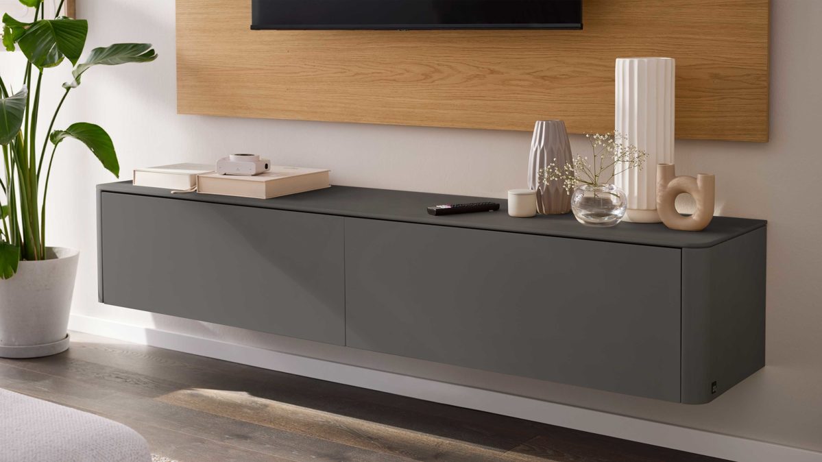Interliving Wohnzimmer Serie 2035 – Lowboard in dunkelgrauem Mattlack