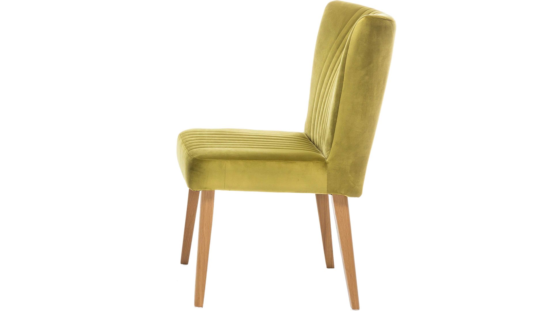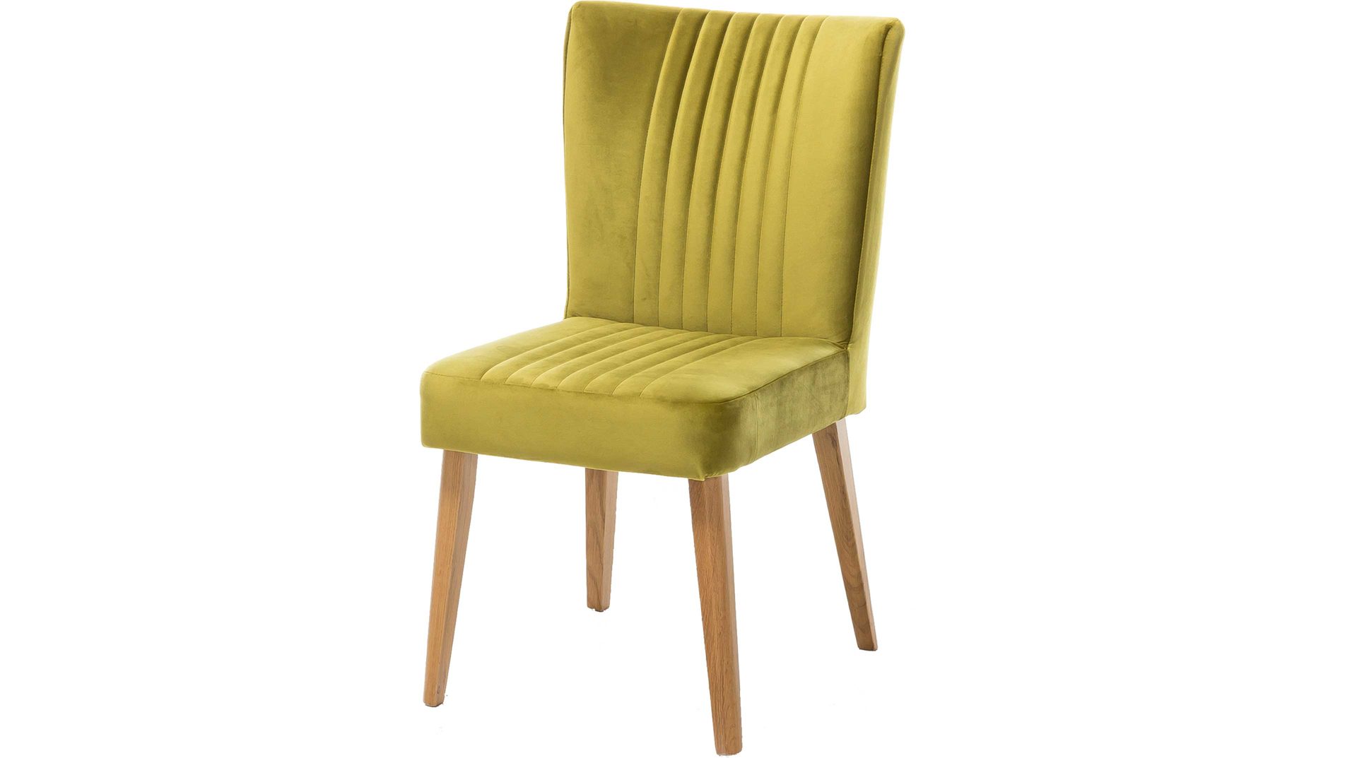 In Olivgrün und mit einem weichen Bezug im Samtlook ist dieser hochwertige Polsterstuhl ein schickes farbliches Highlight. Ob als Flurmöbel, im Gästezimmer oder als Schlafzimmermöbel. Pfiffige Steppnähte, die auf Sitz und Rücken angebracht sind, verleihen diesem Sitzmöbel eine geschmackvolle Note. Gleich zu mehreren macht der funktionale Polsterstuhl mit den Maßen von ca. 46 x 92 x 66 cm (BxHxT) an einem Esstisch aus Eiche eine gute Figur, denn das Holzgestell des Modells besteht ebenfalls aus Eiche natur.