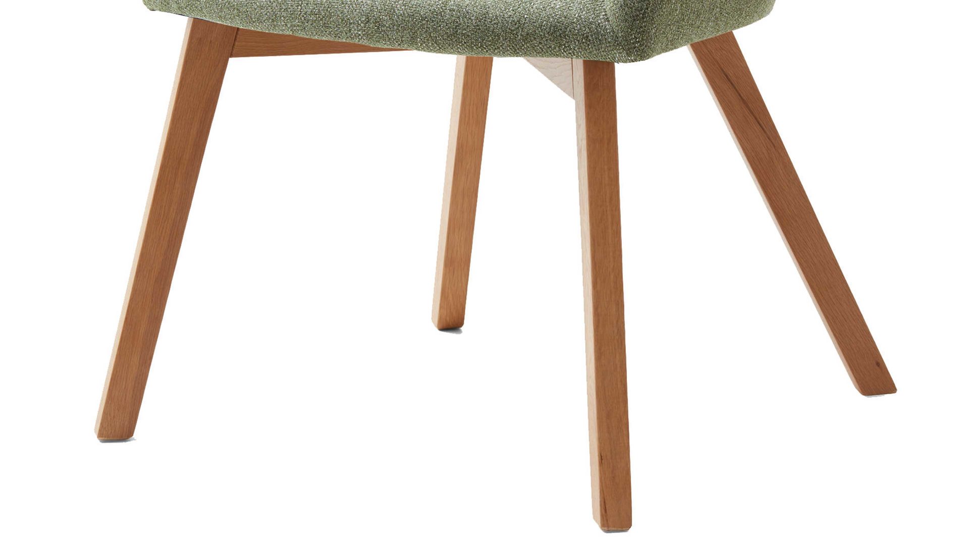 Darüber hinaus weiß er in puncto Komfort zu überzeugen. Lackierte Eichenholzfüße bilden die robuste Basis. Das natürliche Material sorgt einerseits für die nötige Stabilität und bringt andererseits ein warmes, einladendes Flair in den Raum. Attraktiv abgerundet wird der Vierfußstuhl durch den blassgrünen Webstoffbezug. Die außergewöhnliche Farbe wirkt überaus elegant und harmoniert vorzüglich mit den Holzfüßen. Einen feinen Akzent setzt die Steppnaht im Rücken des Schalensitzes.