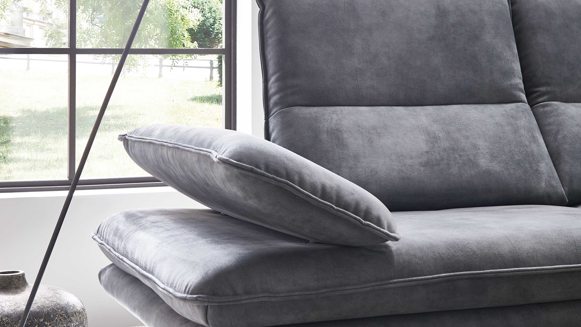 Diese manuelle Armlehnverstellung mit Rasterfunktion ist eine praktische Mehrpreis-Funktion für die Designer-Sofas aus der W.SCHILLIG Polsterserie Broadway. Sie macht das Sitzen auf der Couch noch bequemer und entspannender - für besonders viel Erholung. Das Armteil lässt sich mehrfach verstellen und so stets in die gewünschte Position bringen - je nachdem, wie Sie Ihren Arm ablegen möchten. Darüber hinaus können Sie das angewinkelte Armteil bei Ihren Powernaps auf dem Sofa als Kopfablage verwenden.