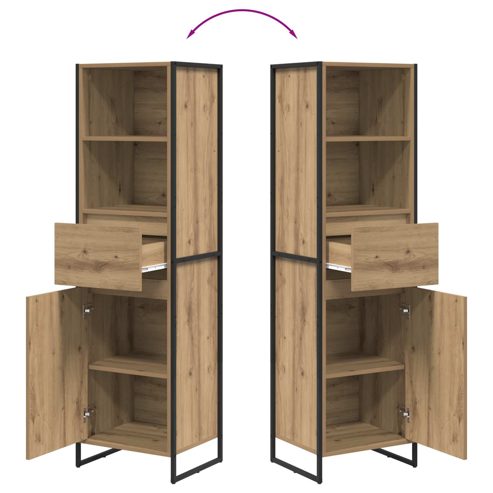 Dieses industrielle Bücherregal verbindet modernen Style mit nützlicher Funktion und ist eine praktische Lösung für dein Wohnzimmer. Aus Holzwerkstoff fertiggestellt, hat es eine schicke rechteckige Form, die sich super in verschiedene Räume einfügt. Die robuste Bauweise mit Stahlbeinen macht das Regal zu einer zuverlässigen Wahl für jeden Haushalt. Es ist vielseitig einsetzbar, perfekt zum Aufbewahren von Büchern, Ausstellen von Deko oder für andere wichtige Dinge, und verleiht deinem Raum einen rustikalen Charme. Holzwerkstoff-Konstruktion: Das Regal besteht aus hochwertigem Holzwerkstoff, der stabil und langlebig ist. Dadurch bleibt es viele Jahre ein echter Hingucker in deinem Zuhause. Stahlbeine für Stabilität: Die robusten Stahlbeine sorgen für Stabilität und sicheren Halt. Diese Materialkombination garantiert eine solide Basis und Langlebigkeit, auch bei schweren Gegenständen auf den Regalen. Geräumige Stauraumkapazität: Das Regal bietet viel Platz für alles Mögliche, von Büchern bis zu Deko. Die vielen Fächer helfen, Ordnung zu halten und deinen Wohnraum sauber zu halten. Visuelle Anziehung und Design: Sein modernes, industrielles Design macht das Regal zu einem tollen Blickfang. Die Kombination aus Holz und Stahl zieht alle Blicke auf sich und passt super zu verschiedenen Einrichtungsstilen. Einfache Montage: Die Montage ist einfach und erfordert zwei Personen und einen Schraubendreher, damit du das Regal schnell nutzen kannst und schnell von den praktischen Vorteilen profitierst. ** Farbe: Kunsthandwerk Eiche ** Material: Holzwerkstoff ** Gesamtabmessungen: 43 x 36 x 150,5 cm (L x B x H) ** Mit Schublade ** mit 1 Tür ** Montage erforderlich: Ja ** Lieferumfang: ** 1 x Bücherregal