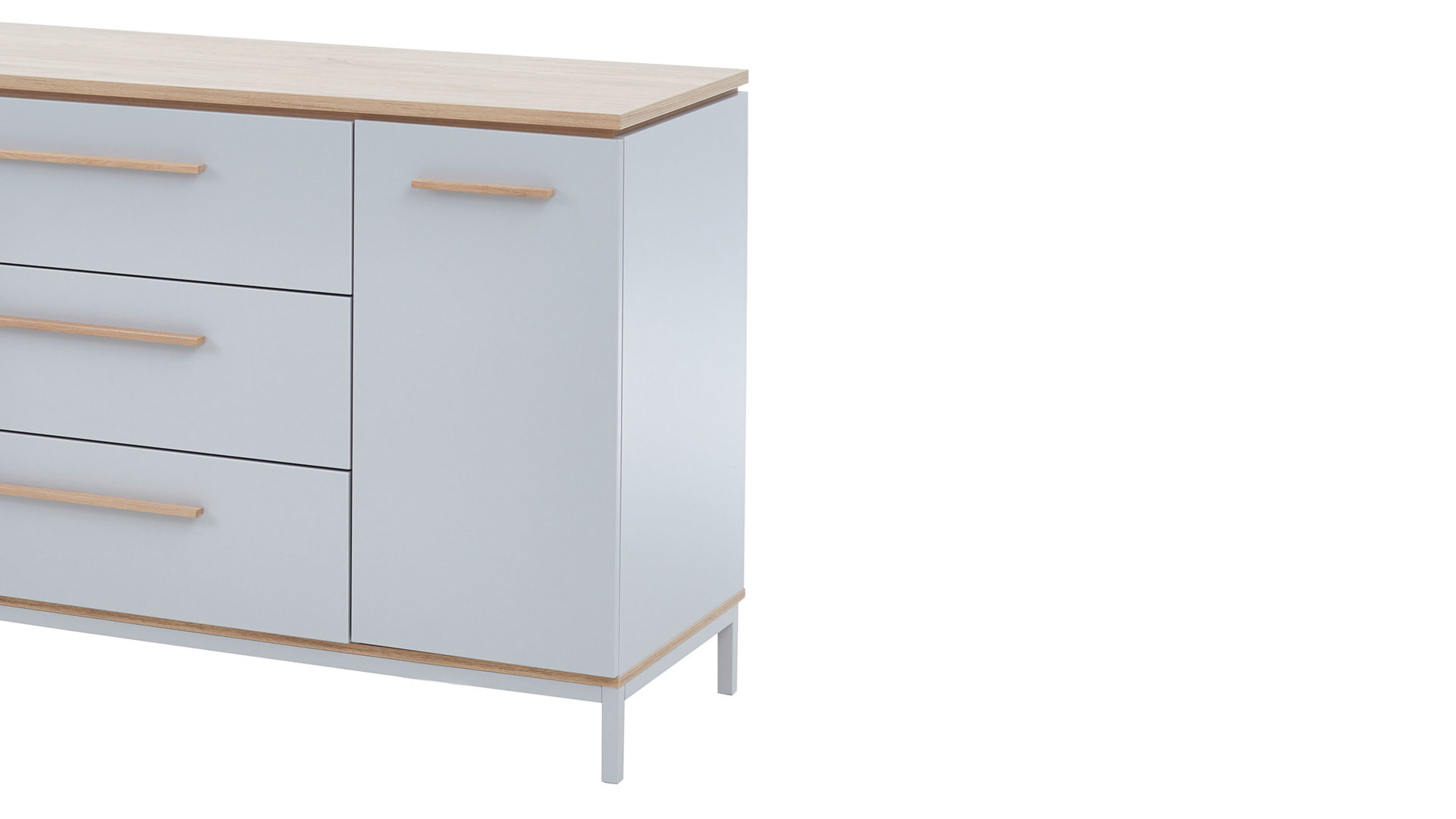 Funktional überzeugt die erstklassig verarbeitete Kommode mit drei Schubladen und einer Tür samt Holzboden zur Unterteilung. In den geschlossenen Bereichen können Sie etwa Unterwäsche, Bettwäsche und andere Textilien oder auch kleinere Accessoires licht- und staubgeschützt sowie übersichtlich aufbewahren. Die oberste Schublade ermöglicht Ihnen den Vollauszug.