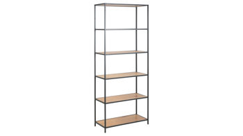 Ein robustes Finish bekommt das Standregal durch das schwarz pulverbeschichtete Stahlgestell mit rauer Oberfläche. Die asymmetrische Aufteilung des vielseitig einsetzbaren Kleinmöbels unterstreicht den zeitgemäßen und aufregenden Look des Bücherregals. Mit geräumigen Maßen von ca. 77 x 185 x 35 cm (BxHxT) passt das Regal optimal in viele Wohnkonzepte.