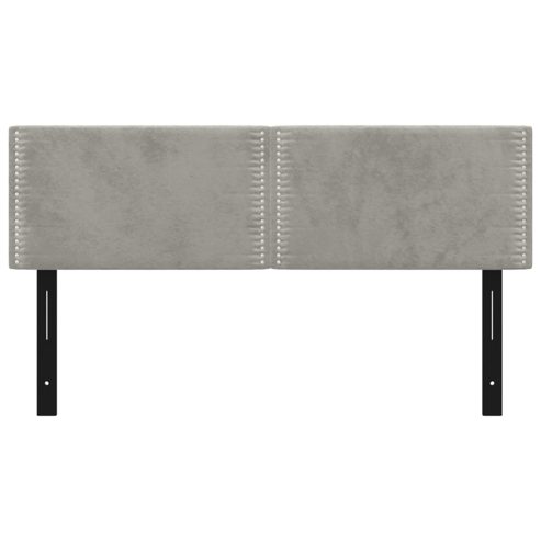 Diese klassischen Kopfteile in stilvollem Design verleihen deinem Bettgestell einen kompletten Look und passen in jedes Schlafzimmer. Weicher Samt: Samt ist ein weicher, luxuriöser Stoff, der sich durch seinen dichten Flor aus gleichmäßig geschnittenen Fasern auszeichnet, die einen glatten Flor haben. Samt fühlt sich unverwechselbar weich an und ist angenehm zu berühren.Robuste und stabile Beine: Die Holzbeine sorgen für Robustheit und Stabilität.Höhenverstellbar: Das Bettkopfteil ist ganz nach Belieben höhenverstellbar.Hervorragende Unterstützung: Das Bett-Kopfteil bietet dir eine hervorragende Unterstützung, während du im Bett sitzt, um zu lesen oder fernzusehen.Elegantes Design: Die Nieten entlang der Kanten steigern die klassische Schönheit des Polsterbett-Kopfteils. Hinweis:Die Lieferung umfasst nur das Bett-Kopfteil. Der Bettrahmen und die Matratze sind nicht im Lieferumfang enthalten. In unserem Shop findest du die passenden Bettgestelle und Matratzen.Jedes Produkt wird samt einer Montageanleitung geliefert und lässt sich daher einfach zusammenbauen. ** Farbe: Hellgrau ** Material: Samt (100% Polyester), Holzwerkstoff, massives Lärchenholz ** Füllung: Schaumstoff ** Gesamtabmessungen: 144 x 5 x 78/88 cm (B x T x H) ** Abmessungen(jeweils): 72 x 5 x 78/88 cm (B x T x H) ** Lieferung umfasst: ** 2 x Kopfteil