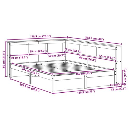 vidaXL Bücherregal-Bett mit Kopfteil 2 pcs Wachsbraun 200 x 160 cm