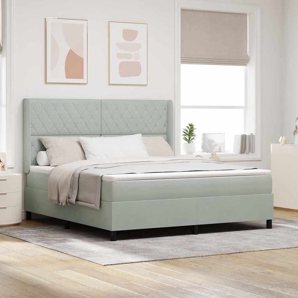 vidaXL LED Boxspringbett mit Matratze Hellgrau 180 x 200 cm Samt