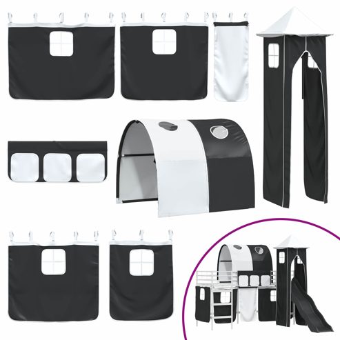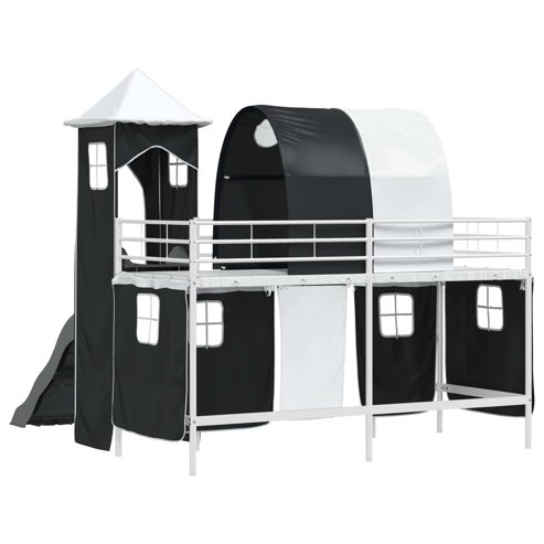 Dieser moderne Hochbett-Rahmen mit Vorhängen, Turm und Rutsche ist die perfekte Lösung für coole Kinderzimmer. Das frische Design sorgt dafür, dass es überall gut aussieht. Mit dem tollen Turm und der aufregenden Rutsche wird die Schlafenszeit zum Erlebnis. Das durchdachte Design macht es möglich, den Platz optimal zu nutzen und passt super zum aktiven Lebensstil von Kindern, denn es fördert Fantasie und Kreativität. So wird das Möbelstück zum echten Highlight im Kinderzimmer. Robuster Metallrahmen: Dieser Metallrahmen ist extrem stabil und hält den Abenteuern aktiver Kinder stand. Die matte Oberfläche sieht super aus und passt zu jedem Kinderzimmer-Stil. Sicherheit und Stabilität sind auch wichtig – das Bett ist darauf ausgelegt, den täglichen Gebrauch zu überstehen. Spannende Rutsche und Turm: Mit der integrierten Rutsche und dem Turm wird das Schlafzimmer zum Spielplatz. Die Elemente fördern kreatives Spielen und machen es zu mehr als nur einem Bett – hier wird Lernen mit Spaß kombiniert. Funktionale Vorhänge: Das Bett hat Vorhänge, die einfach zu handhaben sind und für einen ordentlichen Look sorgen. Die coolen blauen und schwarzen Farben der Vorhänge bringen ein bisschen Geheimnis und bieten gleichzeitig die Privatsphäre, wenn nötig. Der Bogen versteckt die Montage und sieht dazu noch gut aus. Matte Oberfläche: Die matte Lackierung hält Fingerabdrücke und Staub fern und sieht einfach schick aus. Das Design ist zeitlos und passt wunderbar in moderne Räume, während die Pflege minimal bleibt. Einfach zu reinigen: Für die Pflege reicht ein feuchtes Tuch, ohne aggressive Chemikalien. Befolge die Montageanweisung des Herstellers, um die Möglichkeiten des Bettes optimal zu nutzen und seine Lebensdauer zu verlängern. So ist es eine langlebige Wahl für Familien. ** Farbe: Weiß und Schwarz ** Rahmenmaterial: Metall ** Gesamtabmessungen: 194 x 105 x 116 cm (L x B x H) ** Matratzengröße: Kurzes Einzelbett (90 cm x 190 cm oder 35" x 75") ** Zusammenklappbar ** Montage erforderlich: Nein