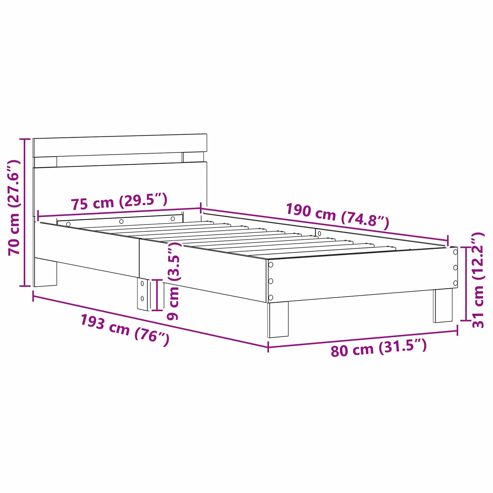 vidaXL Bettrahmen mit Kopfteil Altholz 75 x 190 cm Holzwerkstoff