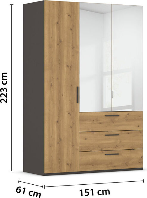 Rauch Drehtürenschrank 3-türig, 2 Spiegeltüren, 3 Schubkästen Dekor Asteiche AW31C.01G0