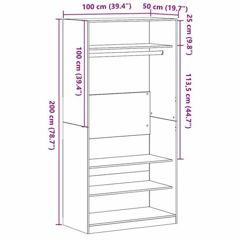 vidaXL Kleiderschrank Schwarze Eiche 100 x 50 x 200 cm Holzwerkstoff
