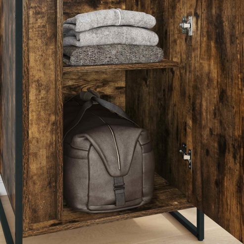 Der industrielle Kleiderschrank ist ein echter Hingucker für jedes Schlafzimmer und kombiniert modernes Design mit funktioneller Robustheit. Der klare, quadratische Rahmen hat ein minimalistisches Design, das zu modernen sowie klassischen Einrichtungsstilen passt. Innen gibt's viel Platz für Kleidung, Accessoires und persönliche Sachen, was dein Schlafzimmer ordentlich und zugleich stylisch macht. Hochwertige Materialien: Der Kleiderschrank besteht aus Holzwerkstoff, der sowohl stabil ist als auch eine glatte Oberfläche hat, die die moderne Ästhetik unterstreicht. Die Materialwahl sorgt für Langlebigkeit und einfache Pflege, was ihn zu einer praktischen Lösung für jedes Schlafzimmer macht. Bauteile: Der Schrank hat eine starke Rückwand und einen Rahmen aus Holzwerkstoff, ergänzt durch robuste Stahlbeine für zusätzliche Stabilität. Diese Komponenten sind so gestaltet, dass sie sowohl funktional als auch stylish sind, sodass der Kleiderschrank in jedem Raum zum Hingucker wird. Funktionales Design: Der Kleiderschrank ist langlebig gebaut und hält dem täglichen Gebrauch stand. Die quadratische Form sorgt für Stabilität und maximiert den Platz für optimalen Stauraum. Sein schnörkelloses Design steht ganz im Dienste der Funktionalität, ohne auf Stil zu verzichten. Geeignet für Räume: Ideal für den Innenbereich, besonders in Schlafzimmern, bringt dieser Kleiderschrank industriellen Charme in private Räume. Sein anpassungsfähiges Design fügt sich nahtlos in jede Innenraumgestaltung ein, von minimalistisch bis traditionell. Pflegehinweise: Um sein makelloses Aussehen zu erhalten, wische die Oberfläche mit einem trockenen Tuch ab und vermeide scharfe Chemikalien, damit der Kleiderschrank so schön bleibt wie am ersten Tag. ** Farbe: Raucharbe ** Material: Holzwerkstoff ** Gesamtabmessungen: 50 x 50 x 200 cm (L x B x H) ** Gewicht: 22,95 kg ** Langlebig ** Rahmenmaterial: Holzwerkstoff ** mit 4 Türen ** Innen- / Außenbereich: Nur für den Innenbereich ** Lieferumfang: ** 2 x Warderobe ** Montage erforderlich: Ja