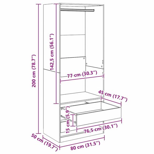 Dieser moderne Kleiderschrank ist die perfekte Lösung für stylische Aufbewahrung in zeitgemäßen Wohnräumen. Er verbindet Einfachheit und Funktionalität dank seiner klaren Linien und schlichten Gestaltung, sodass er sich toll in jedes Schlafzimmer einfügt, die Optik verbessert und den Platz optimal nutzt. Der Holzwerkstoff sorgt nicht nur für viel Stauraum, sondern bietet auch flexible Platzierungsoptionen, ganz ohne Wandunterstützung. Fertigung aus Holzwerkstoff Dieser Kleiderschrank ist aus hochwertigem Holzwerkstoff gebaut, garantiert haltbar und sieht schick aus. Er hält den täglichen Anforderungen stand und passt perfekt in jedes moderne Zuhause. Geräumige Stauraumkapazität Der Schrank hat ein großes Hauptfach, das klasse zum Organisieren von Kleidung, Accessoires und mehr geeignet ist. So bleibt dein Schlafzimmer ordentlich und alles ist leicht zu finden. Freistehendes Design Das flexible freistehende Design ermöglicht es, ihn überall aufzustellen, wo du willst, was dir die Freiheit gibt, den Platz nach Bedarf zu gestalten. Es passt zu verschiedenen Raumstilen und bringt sowohl Funktionalität als auch Stil. Modernes Outfit Dank der klaren Linien und des minimalistischen Designs passt der Kleiderschrank perfekt in moderne Schlafzimmer. Sein schicker Look ergänzt deine bestehende Einrichtung und setzt einen zeitgemäßen Akzent. Kinderspiel beim Zusammenbauen Mit nur zwei Personen und einem Schraubendreher ist der Aufbau ein Leichtes. Der Schrank kommt mit allem, was du für einen einfachen Zusammenbau brauchst und bietet praktische Lösungen für dein Zuhause. ** Farbe: Schwarz Eichen-Optik ** Material: Holzwerkstoff ** Gesamtabmessungen: 80 x 50 x 203 cm (L x B x H) ** Gewicht: 23,56 kg ** Stauraum ** Mit Schublade ** Rahmenmaterial: Holzwerkstoff ** Innen- / Außenbereich: Nur für den Innenbereich ** Lieferumfang: ** 1 x Kleiderschrank ** Montage erforderlich: Ja