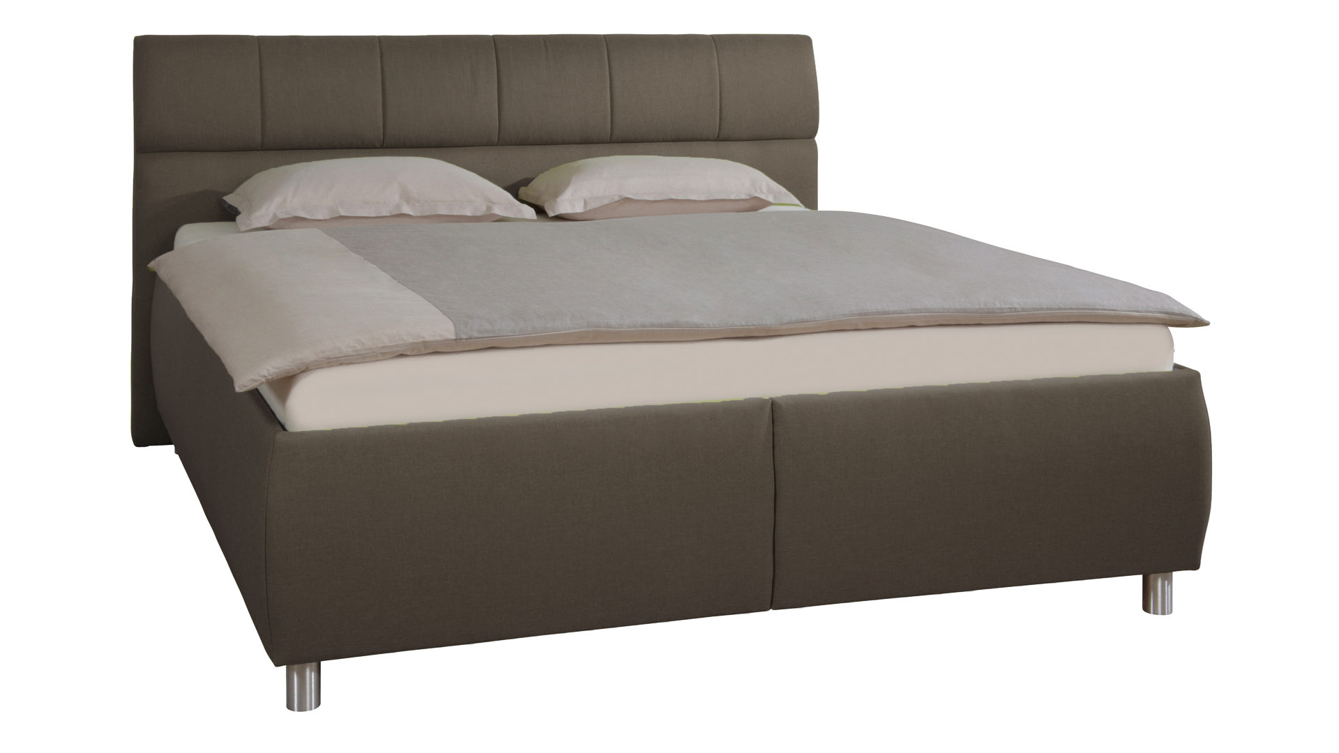 Die beiden getrennten Basisgestelle sind jeweils mit einer Bonnellfederkernmatratze ausgestattet, die ca. 120 Federn pro m² enthalten und einen umlaufenden festen Rahmen aus Komfortschaum aufweisen. Die Höhe der Boxen beträgt jeweils ca. 39 cm - einschließlich der ca. 10 cm hohen Füße.