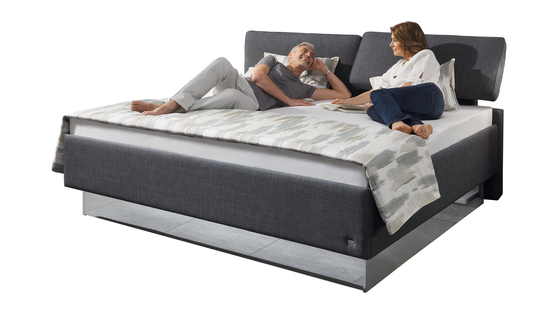 Bestehend aus zwei Boxen und einer durchgehenden Matratze mit Topper bietet das attraktive Komfortbett alle Annehmlichkeiten des typischen Boxspringaufbaus. Es schafft beste Voraussetzungen für erholsamen Schlaf, der unabdingbar ist, um jeden Tag leistungsfähig zu sein.