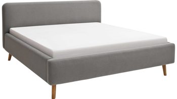 Das Boxspringbett Philly kombiniert einen silberfarbenen, melierten Stoffbezug mit klassisch-schwarzen Kunststofffüßen. Durch die Materialien und Farben strahlt es moderne Eleganz aus. Auch die Vorderseite des Bettes ist stoffbezogen, was seinen gemütlichen Charakter unterstreicht.