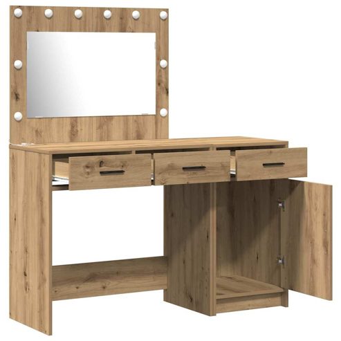 Dieser moderne Schminktisch bietet eine super Mischung aus schickem Aussehen und praktischem Stauraum für dein Schlafzimmer. Mit seiner eleganten rechteckigen Form hat er ein glattes und praktisches Design, das perfekt in moderne Dekore passt. Außerdem sorgt die integrierte LED-Streifenbeleuchtung dafür, dass dein Kosmetikbereich richtig aufgewertet wird und dir sowohl Stil als auch Qualität für deine täglichen Routinen gibt. Materialien: Hergestellt aus Holzwerkstoff, der robust und zuverlässig ist. Dieses Material ist dafür gemacht, dem täglichen Gebrauch standzuhalten und dabei modern auszusehen. Die glatte Oberfläche erfüllt hohe Qualitätsstandards, sodass dieser Tisch lange in deinem Schlafzimmer bleibt. Enthaltene Komponenten: Der Tisch hat praktische flächenbündige Türen, die mehr Stauraum bieten und ideal sind, um deine persönlichen Sachen außer Sicht zu halten. Die flexiblen LED-Streifenlichter erhellen den Bereich, sodass die tägliche Vorbereitung kinderleicht ist, egal wie hell es draußen ist. Merkmale / Funktion / Design: Dieses Stück ist auf Einfachheit ausgelegt, mit minimaler Dekoration und einem Fokus auf Praktikabilität. Clever platzierte Schubladen erfüllen all deine Stauraumbedürfnisse und bleiben kompakt, um in die meisten Schlafzimmer zu passen. Empfohlene Verwendung: Perfekt für jedes Schlafzimmer, fungiert dieser Schminktisch als schicke Vanity oder Stauraumlösung. Sein moderner Stil macht jeden zeitgenössischen Raum schöner und ist praktisch genug für den täglichen Gebrauch. Pflege & Wartung: Wisch ihn einfach mit einem weichen, trockenen Tuch ab, um ihn schön zu halten. Für die LED-Beleuchtung, überprüf ab und zu die Anschlüsse zur Sicherheit und um sicherzustellen, dass sie lange halten. ** Farbe: Braun ** Material: Holzwerkstoff ** Gesamtabmessungen: 40 x 41 x 75 cm (L x B x H) ** Gewicht: 40.5 kg ** Lichtertyp: Led-streifen ** Mit flächenbündige tür tür ** Innen- / außenbereich: Nur für drinnen ** Lieferung: ** 2 x Schminktisch ** Anzahl der elemente: 2 ** Versammlung erforderlich: Ja Bitte beachten: Nur zertifizierten Gleichstrom-Eingang mit 5 V verwenden. Eine höhere Spannung kann zu Überhitzung führen und das Gerät beschädigen, was wiederum zu Überhitzung und Brandgefahr führen kann. Schließe dieses Produkt nur an eine Stromversorgung an, die in der Bedienungsanleitung oder auf dem Typenschild beschrieben ist oder von vidaXL ausdrücklich empfohlen wird. Dieses Gerät darf nicht von Kindern unter 14 Jahren oder Personen mit eingeschränkten körperlichen, sensorischen oder geistigen Fähigkeiten oder mangelnder Erfahrung und Kenntnis im Umgang mit elektronischen Geräten verwendet werden. Elektrizität ist gefährlich. Schäden und unsachgemäße Installation, Verwendung oder Veränderung (Austausch einzelner Komponenten) können zu Schäden am Gerät führen, was zu einem Stromschlag und einer Gefahr für den Benutzer führen kann. Dieses Produkt darf nicht in explosionsgefährdeten Bereichen, wie z. B. in der Nähe von brennbaren Flüssigkeiten, Gasen und Staub, oder bei Temperaturen über 50 Grad Celsius oder mehr betrieben werden. Das Produkt nicht einschalten, wenn das Anschlusskabel oder das Netzteil sichtbar beschädigt sind. Wenn das externe flexible Kabel oder die Schnur dieser Leuchte beschädigt ist, darf es ausschließlich vom Hersteller oder seinem Kundendienst oder einer ähnlich qualifizierten Person ausgetauscht werden, um Gefahren zu vermeiden. Schalte die Stromversorgung während der Installation und Wartung aus. Stelle sicher, dass die Glühbirnen abgekühlt sind. Die Lichtquelle dieser Leuchte ist nicht austauschbar; wenn die Lichtquelle das Ende ihrer Lebensdauer erreicht hat, muss die gesamte Leuchte ausgetauscht werden. Nur für den Innenbereich geeignet, nicht im Freien verwenden.