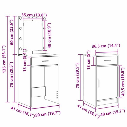 vidaXL Schminktisch mit Tür 3 pcs Grau 50 x 41 x 135 cm Holzwerkstoff
