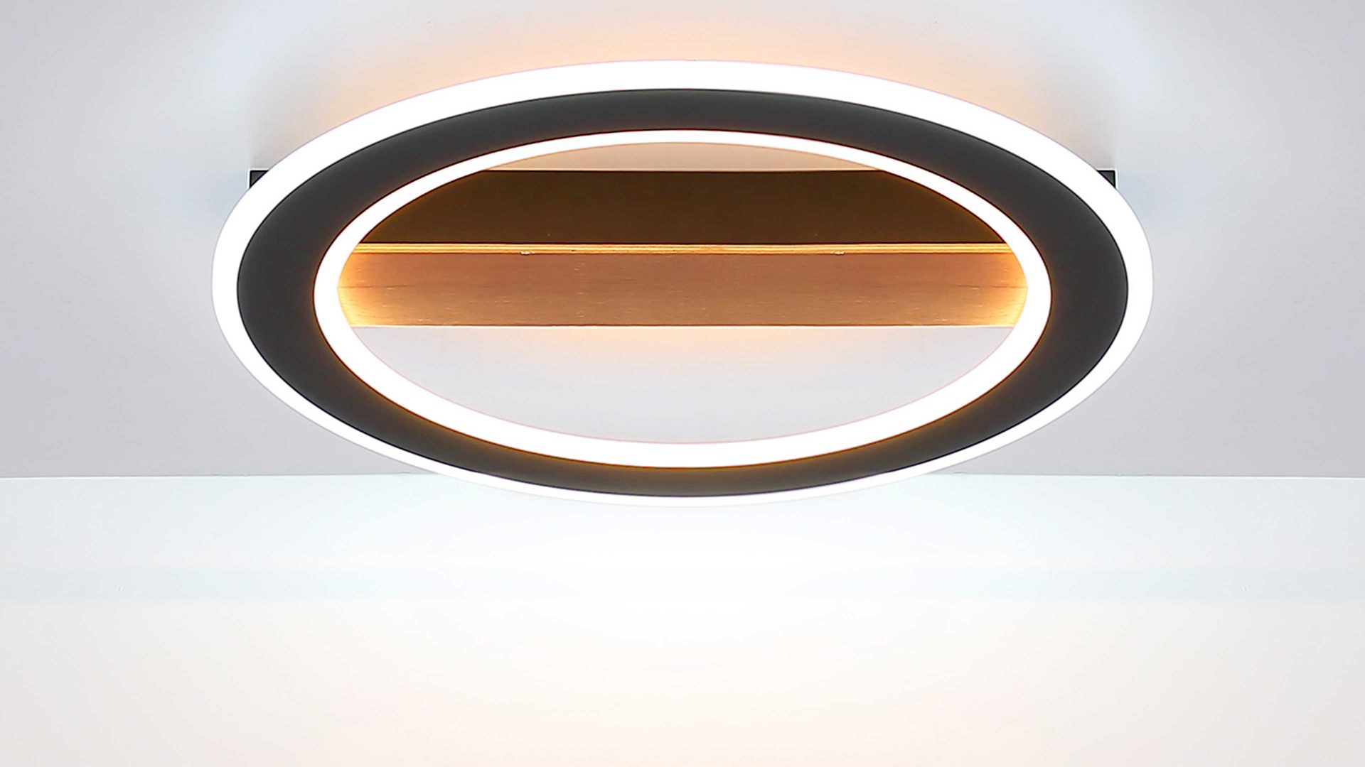 Details mattschwarzes Metall, kombiniert mit holzfarbenem MDF opalweiße Acryl-Leuchtmittelabdeckungen   Maße Durchmesser ...