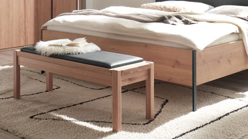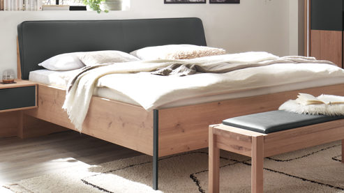 Bettgestelle sind in vier Breiten, vier Längen und zwei Kunstlederfarben erhältlich