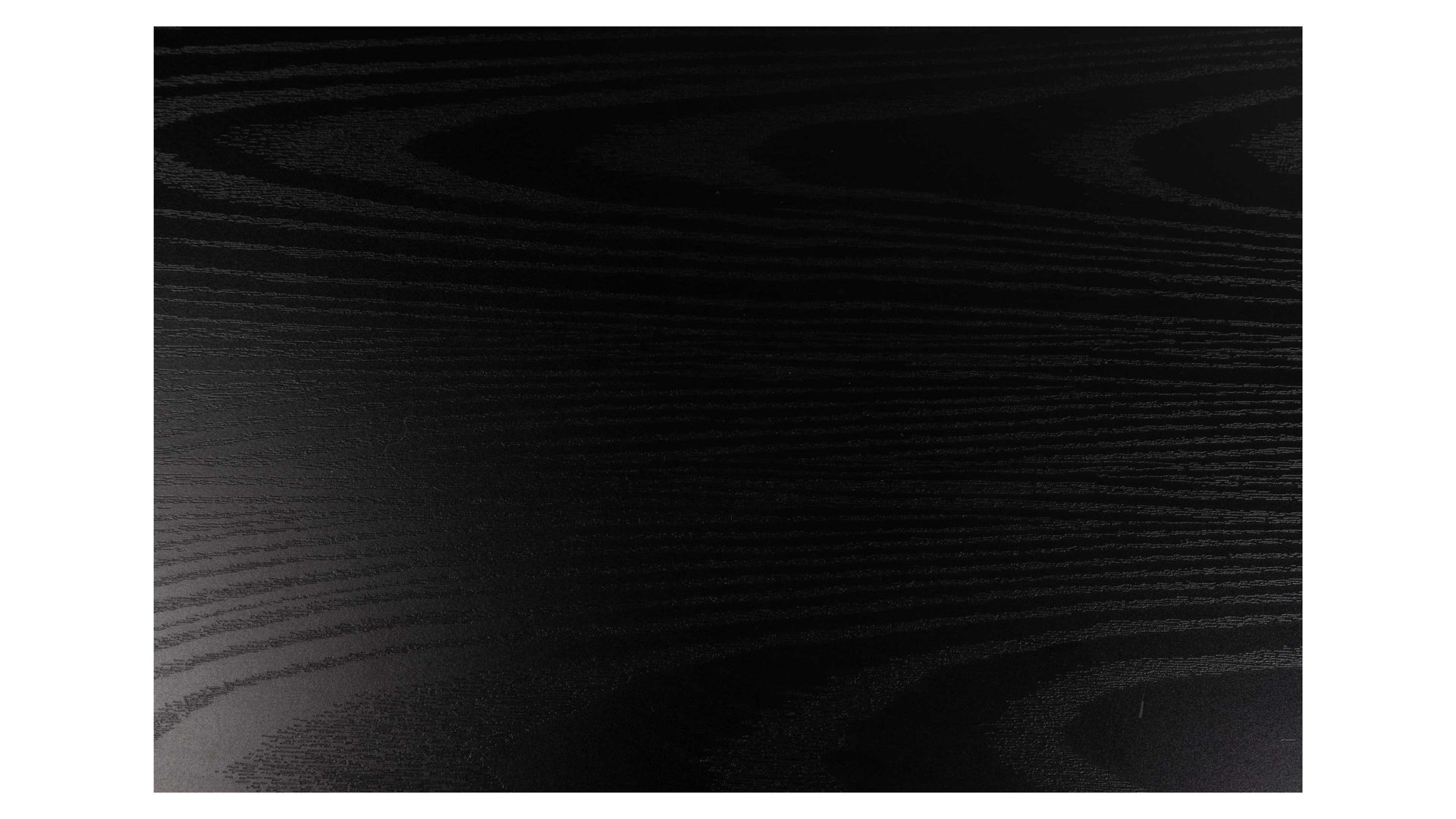 Sein Gestell besteht aus mattschwarz pulverbeschichtetem Metall mit rauer Oberfläche. Hinzu kommen gehärtetes Glas und klassisch-schwarze Esche-Nachbildung, die durch die erstklassige Melaminbeschichtung besonders kratz- und stoßfest sowie wasserabweisend ist, was sie besonders robust und pflegeleicht macht.