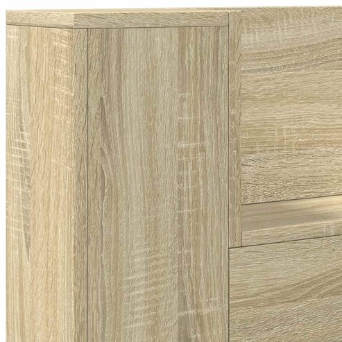 Mit dem modernen Kopfteil-Schränkchen mit LED-Leuchten wird Schlafzimmerdesign komplett neu interpretiert. Funktionaler Stauraum und stimmungsvolle Beleuchtung kommen in einem schlanken, minimalistischen Stil zusammen. Dieses Kopfteil wurde für moderne Räume entworfen und bietet Platz für Bücher und Deko und sorgt dabei mit anpassbarer LED-Beleuchtung für die richtige Atmosphäre. Es ist ein eleganter Eyecatcher und passt perfekt in moderne Innenräume, wo Stil und Funktionalität Hand in Hand gehen. Konstruktion aus Holzwerkstoff Das Kopfteil-Schränkchen ist aus Holzwerkstoff, der eine glatte und elegante Oberfläche bietet, die gleichzeitig haltbar ist. So behält der Schrank auch nach langer Nutzung seine Form und seinen schlichten, schicken Charme, der zu jeder modernen Deko passt. Integrierte LED-Streifenlichter Die LED-Streifenlichter in diesem Kopfteil bieten viele Beleuchtungsoptionen und die mehrfarbigen LEDs können ganz einfach mit einer Fernbedienung gesteuert werden. Du kannst eine entspannende oder lesefreundliche Atmosphäre schaffen und die Stimmung im Schlafzimmer ganz leicht ändern. Funktionale Regalfläche Die Regalbretter sind praktisch gestaltet und bieten Platz für Bücher und Deko, so wird der Bereich hinter dem Kopfteil leicht personalisierbar. Die praktische Anordnung nutzt den Platz optimal und hält alles stets griffbereit. Anpassbare Beleuchtungsoptionen Die LED-Beleuchtung lässt sich in verschiedenen Farben und Helligkeiten einstellen, sodass du die Beleuchtung nach deinem Geschmack anpassen kannst. So kannst du deinem Schlafzimmer einen persönlichen Touch verleihen und die Stimmung jederzeit ändern. Pflegehinweise Um die Oberfläche in gutem Zustand zu halten, einfach mit einem trockenen Tuch abwischen. Vermeide scharfe Chemikalien oder Schleifmittel, um das Finish des Materials zu schützen und die Lebensdauer des Produkts zu verlängern. ** Farbe: Sonoma ** Material: Holzwerkstoff ** Gesamtabmessungen: 120 x 16,5 x 103,5 cm (L x B x H) ** Wandbefestigung ** Fächer für Bücher und Deko ** Integrierte anpassbare RGB LED-Beleuchtung ** Montage erforderlich: Ja ** Lieferumfang: ** 1 x Kopfteilschrank mit LED ** 1 x Set von монтажzubehör