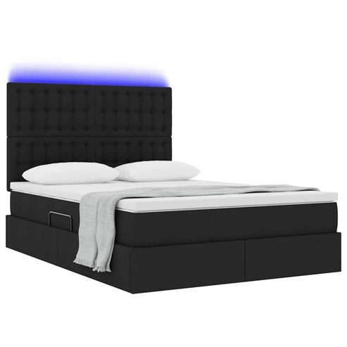 vidaXL Bett mit LED-Lichtleisten Schwarz 140 x 190 cm Stoff