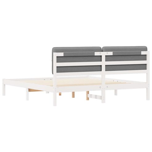 Dieses Bettgestell mit gepolstertem Kopfteil ist eine coole und praktische Ergänzung für jedes moderne Schlafzimmer. Die klaren Linien und das schlichte Design fügen sich nahtlos in zeitgemäße Räume ein, während die weiche Polsterung des Kopfes einen Hauch von Luxus bietet. Es kombiniert gutes Aussehen mit Praktikabilität, damit du erholsam schlafen kannst und der Aufbau easy ist. Perfekt für alle, die eine Mischung aus Komfort, Style und Funktion im Schlafzimmer wollen. Massivholz Kiefer Konstruktion: Das Bettgestell und die Beine sind aus massivem Kiefernholz, das macht sie stabil und zuverlässig. Kiefernholz hat eine tolle Maserung und bringt natürliche Eleganz in dein Schlafzimmer. Gepolstertes Kopfteil mit Schaumstoff: Das weiche Kopfteil gibt dir Komfort und Unterstützung, damit du dich entspannen oder im Bett TV schauen kannst. Der abnehmbare Bezug ist waschbar und macht die Pflege leicht. Plattform-Lattenrost Design: Dieses Bettgestell hat ein Plattform-Lattenrost, das festen Halt für Matratzen bietet. Die eng beieinander liegenden Latten machen eine Boxspring überflüssig, was den Aufbau und die Pflege einfacher macht. Modernes, sauberes Design: Mit seiner minimalistischen Ästhetik zeichnet sich das Bettgestell durch klare Linien aus. Es spricht Leute an, die Schönheit und Funktionalität in ihrem Schlafzimmer möchten. Einfach zu pflegen: Mit leichten Pflegehinweisen bleibt das Bettgestell durch einfaches Abwischen mit einem feuchten Tuch immer einladend und bereit für erholsame Nächte. ** Farbe: Hellgrau ** Material: Massives Kiefernholz ** Rahmenmaterial: Massivholz Kiefer ** Gesamtabmessungen: 205,5 x 205,5 x 84,5 cm (L x B x H) ** Matratzengröße: Kaiserbett (200 cm x 200 cm oder 79" x 79") ** Maximale Personenzahl: 2 ** Langlebig ** Kein Boxspring erforderlich ** Einfach zu reinigen ** Einfache montage ** Abnehmbarer &waschbarer Kopfstützenkissenbezug ** Montage erforderlich: Ja ** Lieferumfang: ** 1 x Bettgestell ** 1 x Kopfteil