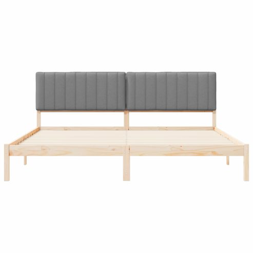 Dieser Holzbettrahmen mit gepolstertem Kopfteil ist ein echter Hingucker für jedes Schlafzimmer und bietet einen schicken, minimalistischen Stil, der zu vielen verschiedenen Innendekoren passt. Mit seiner schlanken, rechteckigen Form ist der Bettrahmen perfekt für das ganze Jahr und schafft eine entspannte Atmosphäre, die erholsamen Schlaf fördert. Massivholz Kiefernkonstruktion: Dieser Bettrahmen besteht aus massivem Kiefernholz, was Robustheit und Haltbarkeit garantiert. Das Material wurde wegen seiner natürlichen Stärke ausgewählt, sodass das Bett über Jahre hinweg stabil und ansprechend bleibt. Plattform-Lattenrahmen-Design: Mit einem Plattform-Lattenrahmen bietet dieses Bett gleichmäßige Unterstützung für Ihre Matratze, ganz ohne Boxspring. Der Abstand der Latten sorgt für eine feste Unterstützung und erhöht die Haltbarkeit der Matratze. Gepolstertes Kopfteil: Das mit Schaumstoff gefüllte Kopfteil sorgt für Komfort beim Anlehnen, egal ob beim Lesen oder Fernsehen. Der Bezug ist abnehmbar und waschbar, was die Pflege erleichtert. Einfache Reinigung und Pflege: Halten Sie den Bettrahmen einfach sauber, indem Sie ihn mit einem feuchten Tuch abwischen. Der abnehmbare Bezug des Kopfteils macht die Pflege zum Kinderspiel. Einfache Montage: Der Rahmen kann von zwei Personen mit einem Schraubendreher einfach aufgebaut werden, was die Montage effizient macht. Auch die enthaltenen Teile sind klar, sodass man problemlos alles zusammenbauen kann. ** Farbe: Hellgrau ** Material: Massives Kiefernholz ** Rahmenmaterial: Massivholz Kiefer ** Gesamtabmessungen: 205,5 x 205,5 x 84,5 cm (L x B x H) ** Matratzengröße: Kaiserbett (200 cm x 200 cm oder 79" x 79") ** Maximale Personenzahl: 2 ** Langlebig ** Kein Boxspring erforderlich ** Einfach zu reinigen ** Einfache montage ** Abnehmbarer &waschbarer Kopfstützenkissenbezug ** Montage erforderlich: Ja ** Lieferumfang: ** 1 x Bettgestell ** 1 x Kopfteil