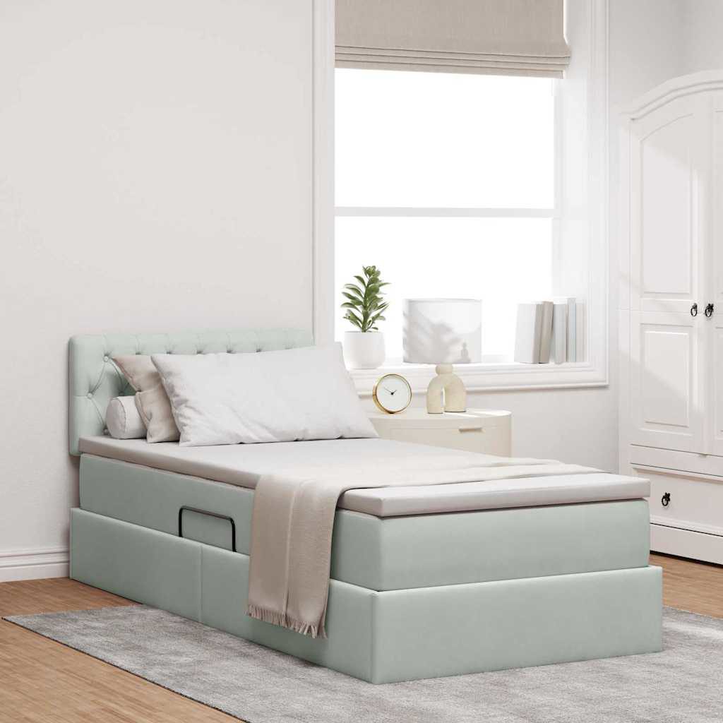 vidaXL Bett mit Stauraum und LED mit LED Hellgrau 100 x 200 cm Samt