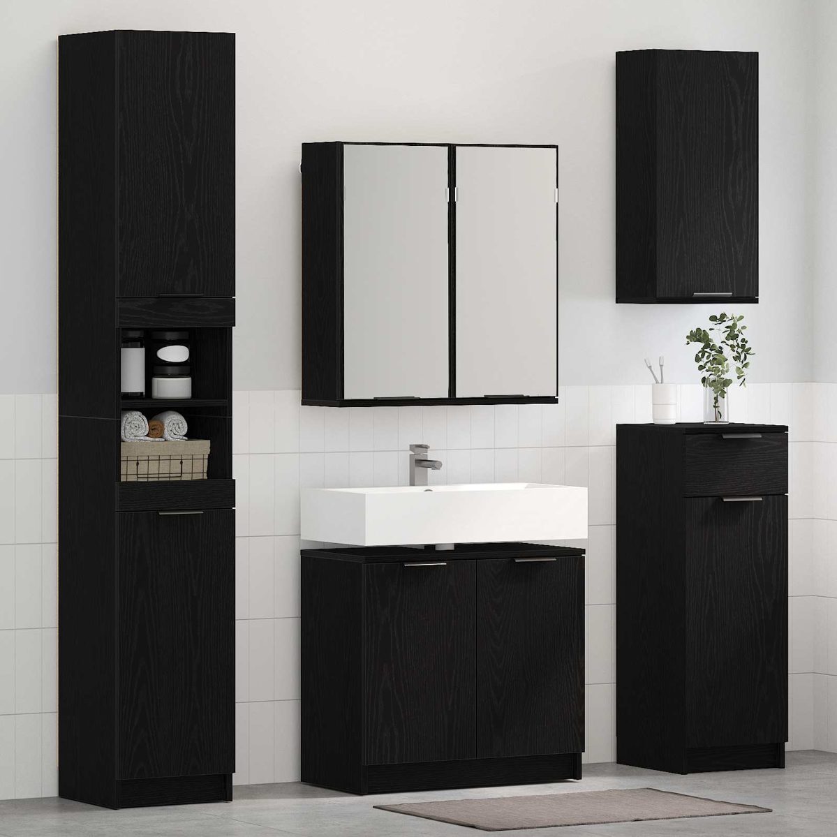 vidaXL Badezimmermöbel-Set 4 pcs Schwarz Eichen-Optik Holzwerkstoff