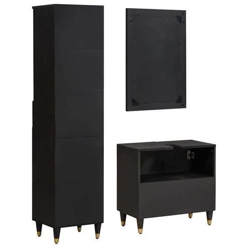 vidaXL Badezimmerschrank-Set mit Tür 3 pcs Schwarz Massivholz Mango