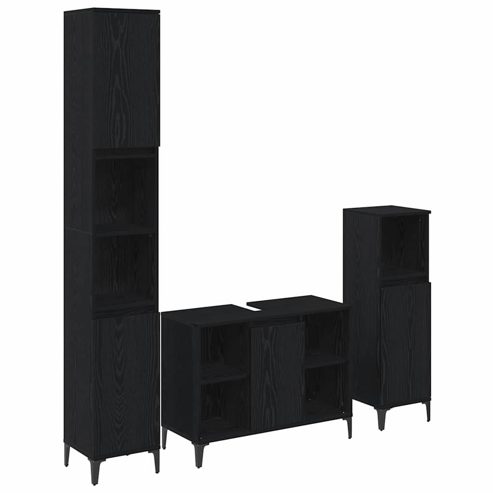 vidaXL Badezimmermöbel Set 3 pcs Schwarz Eichen-Optik Holzwerkstoff