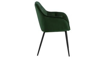 Dabei harmoniert der Polsterstuhl in seiner sanften Formensprache mit zahlreichen Einrichtungsstilen. Moderne Geradlinigkeit ergänzt er ebenso stimmig wie den beliebten Vintage-Trend. Auch farblich erlaubt der Esszimmerstuhl Brooke angenehme Freiheit beim Kombinieren: Dafür sorgt der waldgrüne Bezug Vic aus Samt, der die gesamte Sitzschale inklusive der bequemen Armlehnen weich umhüllt. Die rau pulverbeschichteten Metallfüße fließen in mattem Schwarz stimmig in das Gesamtbild ein.