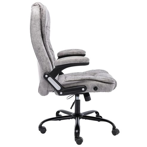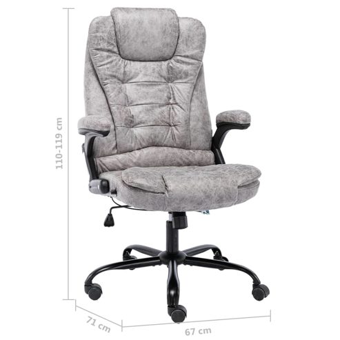 Dank der Liegefunktion ist dieser Bürostuhl eine hervorragende Ergänzung für dein Büro. Er ist ergonomisch gestaltet und bietet höchsten Komfort während eines geschäftigen Arbeitstages. Er verfügt über eine hohe Rückenlehne, geschwungene Armlehnen und einen dick gepolsterten Sitz, um selbst an langen Arbeitstagen Komfort zu bieten. Das höhenverstellbare Design ermöglicht die Anpassung an die Schreibtischhöhe und sorgt für mehr Komfort und eine gesunde Ausrichtung der Wirbelsäule. Dieser Ruhesessel ist mit Nylonrollen ausgestattet und lässt sich daher ganz einfach umher verschieben. ** Farbe: Hellgrau ** Material: Wildlederimitat (100% Polyester), Metall ** Gesamtmaße: 67 x 71 x (110 - 119) cm (B x T x H) ** Sitzbreite: 51 cm ** Sitztiefe: 50 cm ** Höhe der Rückenlehne: 69 cm ** Sitzhöhe vom Boden: 47 - 57 cm ** Höhenverstellbar ** Mit Gasdruckfeder ** Max. Belastbarkeit: 110 kg ** Zusammenbau erforderlich: Ja Maximal 110 kg pro Sitzplatz. Achte auf die Gefahr von offenem Feuer und anderen starken Wärmequellen in der Nähe des Produkts.