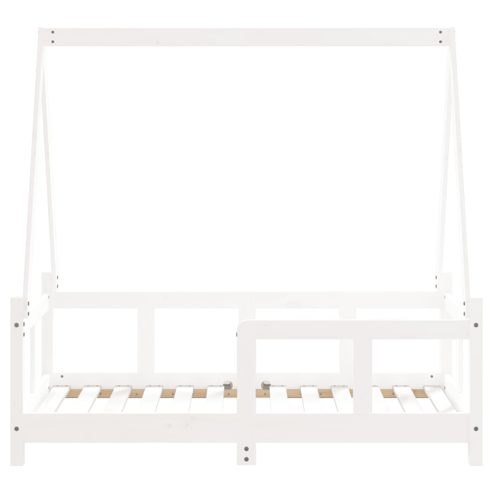Mit diesem fantastischen Kinderbett aus Holz bietest du deinen Kleinen einen eigenen lustigen Platz! Massives Kiefernholz: Das Kinderbett ist aus massivem Kiefernholz gefertigt. Massives Kiefernholz ist ein wunderschönes Naturmaterial. Kiefernholz weist eine gerade Maserung auf und die Aststellen verleihen dem Material seine charakteristische, rustikale Optik.Robuste Latten: Das Kinderbett ist mit Holzlatten versehen, die für einen festen Halt, Belüftung und Stabilität sorgen.Design in Hausform: Dieses Kleinkinderbett weist ein durchdachtes Design mit einem Rahmen in Hausform auf, an dem du Bettvorhänge aufhängen kannst, um Privatsphäre für dein Kind zu schaffen.Durchdachtes Design: Dank der geringen Höhe des Einzelbettes können Kinder leicht ins Bett ein- und aussteigen. ** Farbe: Weiß ** Material: Massives Kiefernholz ** Gesamtabmessungen: 145,5 x 75,5 x 137 cm (L x B x H) ** Passende Matratzengröße: 70 x 140 cm (B x L) (Matratze nicht im Lieferumfang inbegriffen) ** Geeignet für Kinder zwischen 18 Monaten und 4 Jahren ** Zusammenbau erforderlich: Ja WARNUNG! Stelle dieses Kinderbett nicht in der Nähe von Wärmequellen, Fenstern und anderen Möbeln auf. WARNUNG! Benutze dieses Kinderbett nicht, wenn ein Teil kaputt ist, gerissen ist oder fehlt.