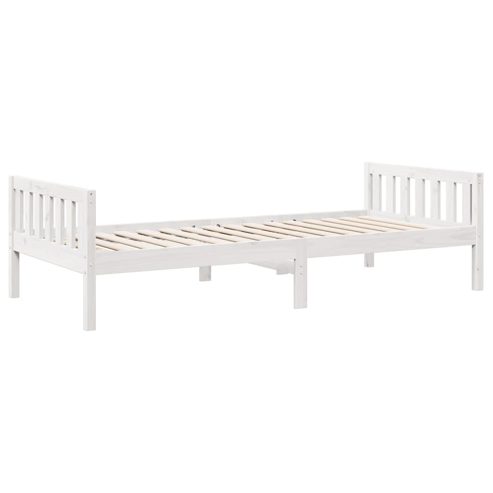 In diesem Kinderbett werden die Kleinen einen besseren, erholsameren Schlaf genießen! Das Bett ist eine wertvolle Ergänzung für jedes Kinderzimmer.Stabiles und langlebiges Gestell: Massives Kiefernholz ist für seine Stärke und Haltbarkeit bekannt. Seine gerade Maserung und die charakteristischen Aststellen tragen zu seinem rustikalen Charme bei.Lattenrost für optimale Unterstützung: Der Bettrahmen ist mit einem Lattenrost ausgestattet, der deine Matratze stützt und atmungsaktiv hält.Stabile und haltbare Beine: Dieses Bett wird von starken Beinen getragen, die für Stabilität, Sicherheit und Festigkeit sorgen.Gut zu wissen:Die Lieferung beinhaltet nur einen Bettrahmen. Die Matratze ist nicht enthalten. In unserem Shop finden Sie auch passende Matratzen. ** Farbe: Weiß ** Material: Massives Kiefernholz ** Abmessungen: 205,5 x 85,5 x 57 cm (L x B x H) ** Max. Belastbarkeit (mit Matratze): 100 kg ** Geeignete Matratzengröße: 80 x 200 cm (B x L) (Matratze ist nicht im Lieferumfang enthalten) ** Mit Lattenrost ** Zusammenbau erforderlich: Ja