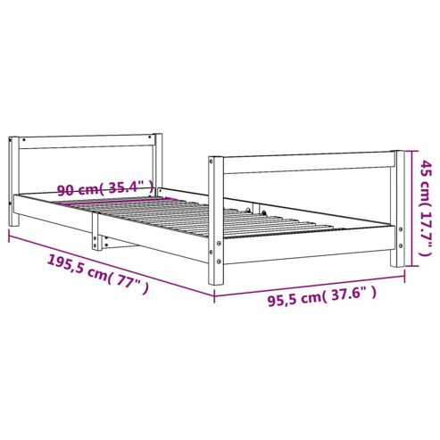 In diesem Kinderbett aus Holz genießt dein Kleiner eine erholsame Nachtruhe. Mit seinem eleganten und zeitlosen Design ist es die perfekte Wahl für deine Kinder! Massives Kiefernholz: Das Kinderbett ist aus massivem Kiefernholz gefertigt. Massives Kiefernholz ist ein wunderschönes Naturmaterial. Kiefernholz weist eine gerade Maserung auf und die Aststellen verleihen dem Material seine charakteristische, rustikale Optik.Robuste Latten: Das Kinderbett ist mit Holzlatten versehen, die für einen festen Halt, Belüftung und Stabilität sorgen.Praktisches Kopfteil und Fußteil: Dank des Kopf- und des Fußteils bleibt die Matratze stabil an ihrem Platz.Durchdachtes Design: Dank der geringen Höhe des Einzelbettes können Kinder leicht ins Bett ein- und aussteigen.Hohe Kompatibilität: Mit seinen klaren Linien und seinem eleganten Design passt das Kinderbett in jedes Kinderzimmer. Gut zu wissen:Bei diesem Bett ist keine Matratze im Lieferumfang enthalten. Wir bieten jedoch eine große Auswahl an Matratzen an. Du kannst in unserem Shop nach einer passenden Matratze suchen. ** Farbe: Schwarz ** Material: Massives Kiefernholz ** Gesamtabmessungen: 195,5 x 95,5 x 45 cm (L x B x H) ** Passende Matratzengröße: 90 x 190 cm (B x L) (Matratze ist nicht im Lieferumfang enthalten) ** Geeignet für Kinder ab 4 Jahren ** Zusammenbau erforderlich: Ja WARNUNG! Stelle dieses Kinderbett nicht in der Nähe von Wärmequellen, Fenstern und anderen Möbeln auf. WARNUNG! Benutze dieses Kinderbett nicht, wenn ein Teil kaputt ist, gerissen ist oder fehlt.
