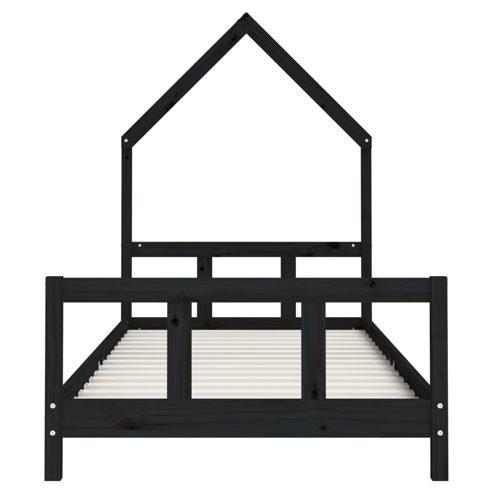 Mit diesem fantastischen Kinderbett aus Holz bietest du deinen Kleinen einen eigenen lustigen Platz! Massives Kiefernholz: Das Kinderbett ist aus massivem Kiefernholz gefertigt. Massives Kiefernholz ist ein wunderschönes Naturmaterial. Kiefernholz weist eine gerade Maserung auf und die Aststellen verleihen dem Material seine charakteristische, rustikale Optik.Robuste Latten: Das Kinderbett ist mit Holzlatten versehen, die für einen festen Halt, Belüftung und Stabilität sorgen.Design in Hausform: Mit seinem coolen und doch schlichten Design macht dieses Kleinkinderbett das Schlafengehen zu einem lustigen Erlebnis. Es bietet viele Möglichkeiten zum Spielen und Aufbauen einer kleinen Kinderwelt, um Kreativität und Fantasie anzuregen.Durchdachtes Design: Dank der geringen Höhe des Einzelbettes können Kinder leicht ins Bett ein- und aussteigen. ** Farbe: Schwarz ** Material: Massives Kiefernholz ** Gesamtabmessungen: 195,5 x 95,5 x 136 cm (L x B x H) ** Passende Matratzengröße: 90 x 190 cm (B x L) (Matratze ist nicht im Lieferumfang enthalten) ** Geeignet für Kinder ab 4 Jahren ** Zusammenbau erforderlich: Ja WARNUNG! Stelle dieses Kinderbett nicht in der Nähe von Wärmequellen, Fenstern und anderen Möbeln auf. WARNUNG! Benutze dieses Kinderbett nicht, wenn ein Teil kaputt ist, gerissen ist oder fehlt.