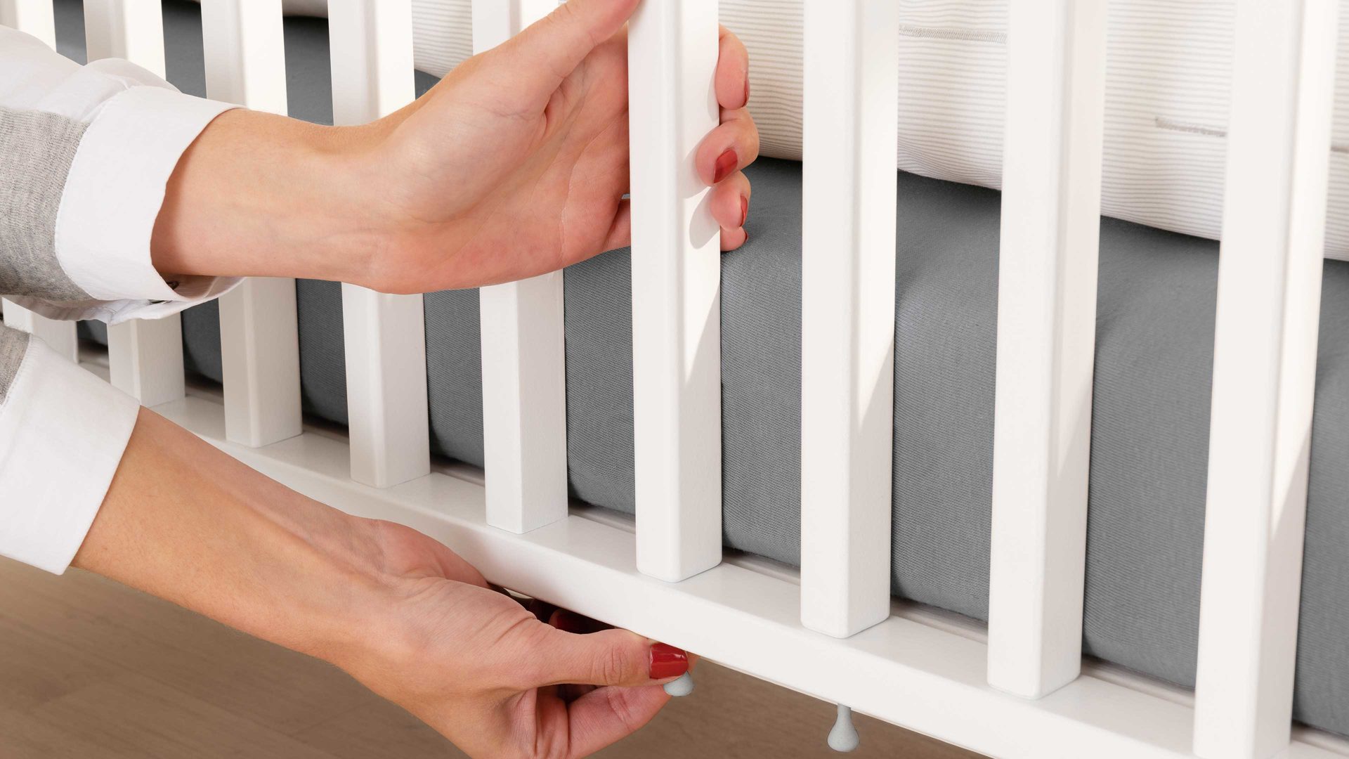 Zu den praktischen Höhepunkten des schadstofffrei lackierten Bettgestells gehören die vierfach höhenverstellbare Einlegetiefe sowie die drei herausnehmbaren Schlupfsprossen. Dabei sind die Knöpfe zum Fixieren dieser Schlupfsprossen kindgerecht weich. Durch die äußerst clevere Gestaltung können Sie das Gestell später zum Juniorbett umbauen.
