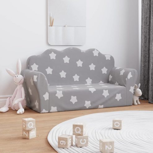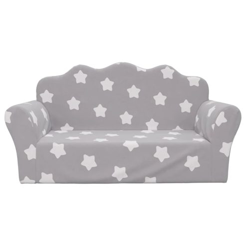 vidaXL Kindersofa 2-Sitzer Hellgrau mit Sternen Weich Plüsch