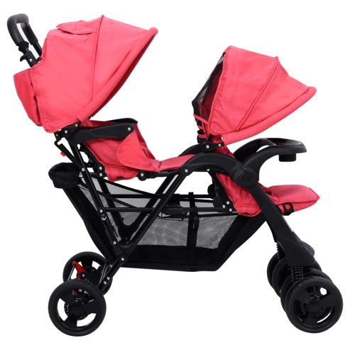 Dieser Zwillingskinderwagen ist perfekt, um deine Kinder auf einen Spaziergang, Ausflug oder beim Einkaufen mitzunehmen. Dieser Zwillingswagen ist aus Stahl und Leinen gefertigt, was ihn robust und komfortabel macht. Das verstellbare Verdeck wird deine Kinder vor UV-Strahlen schützen. An der Unterseite befindet sich auch ein Korb, in dem Spielzeug, Lebensmittel, Decken usw. im Kinderwagen mitgenommen werden können. Zudem lässt sich der Tandem-Kinderwagen für eine platzsparende Aufbewahrung oder den Transport einfach und kompakt zusammenklappen. *Farbe: Rot und Schwarz*Material: Stahl, Leinen*Abmessungen: 122,5 x 53,5 x 111 cm (L x B x H)*Klappbares Design*Zusammenbau erforderlich: Ja