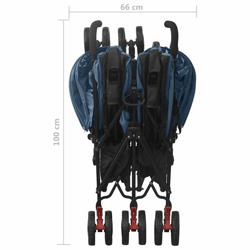 Dieser Geschwisterwagen erleichter das Elternsein und eignet sich perfekt für Abenteuer im Freien wie Spaziergänge im Park, Einkaufen mit der Familie oder Auslandsreisen. Die Rückenlehne dieses Kinderwagens ist 4-fach verstellbar, sodass Ihr Baby stets die bequemste Position einnehmen kann. Die Fußstütze lässt sich auch verstellen. Das klappbare Verdeck schützt die Kinder vor starker Sonne und UV-Strahlen. Der mitgelieferte Korb bietet Platz für Sachen wie Windeln, Decken oder Spielzeuge. Dieser Zwillingskinderwagen lässt sich mit nur einer Hand durch eine sanfte Bewegung zusammen- und ausklappen, was den Transport erheblich erleichtert. ** Farbe: Marineblau ** Material: Stahl, Leinenstoff ** Gesamtabmessungen: 76,5 x 79 x 105 cm (B x T x H) ** Größe (zusammengeklappt): 66 x 100 cm (B x H) ** Mit 12 Rädern ** Zusammenklappbar ** Mit Verdeck ** Verstellbare Fußstütze ** Einhand-Klappsystem ** Mit Korb und Traggürtel ** 4-fach verstellbare Rückenlehne (über einen Knopf) ** Zusammenbau erforderlich: Ja WARNUNG Lassen Sie Ihr Kind nie unbeaufsichtigt. Diese Sitzeinheit ist nicht für Kinder unter 6 Monaten geeignet. Immer die Sicherheitsgurte benutzen. Dieses Produkt eignet sich nicht zum Laufen oder Skaten.Warnung. Dieses Produkt ist nicht zum Laufen oder Skaten geeignet. WARNUNG. Lass das Kind niemals unbeaufsichtigt. GPSR