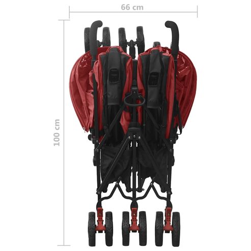 Dieser Geschwisterwagen erleichter das Elternsein und eignet sich perfekt für Abenteuer im Freien wie Spaziergänge im Park, Einkaufen mit der Familie oder Auslandsreisen. Die Rückenlehne dieses Kinderwagens ist 4-fach verstellbar, sodass Ihr Baby stets die bequemste Position einnehmen kann. Die Fußstütze lässt sich auch verstellen. Das klappbare Verdeck schützt die Kinder vor starker Sonne und UV-Strahlen. Der mitgelieferte Korb bietet Platz für Sachen wie Windeln, Decken oder Spielzeuge. Dieser Zwillingskinderwagen lässt sich mit nur einer Hand durch eine sanfte Bewegung zusammen- und ausklappen, was den Transport erheblich erleichtert. ** Farbe: Rot ** Material: Stahl, Leinenstoff ** Gesamtabmessungen: 76,5 x 79 x 105 cm (B x T x H) ** Größe (zusammengeklappt): 66 x 100 cm (B x H) ** Mit 12 Rädern ** Zusammenklappbar ** Mit Verdeck ** Verstellbare Fußstütze ** Einhand-Klappsystem ** Mit Korb und Traggürtel ** 4-fach verstellbare Rückenlehne (über einen Knopf) ** Zusammenbau erforderlich: Ja WARNUNG Lassen Sie Ihr Kind nie unbeaufsichtigt. Diese Sitzeinheit ist nicht für Kinder unter 6 Monaten geeignet. Immer die Sicherheitsgurte benutzen. Dieses Produkt eignet sich nicht zum Laufen oder Skaten.Warnung. Dieses Produkt ist nicht zum Laufen oder Skaten geeignet. WARNUNG. Lass das Kind niemals unbeaufsichtigt. GPSR