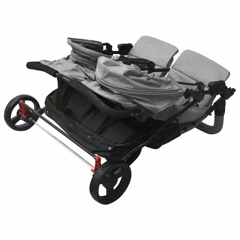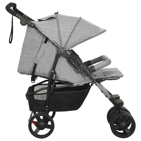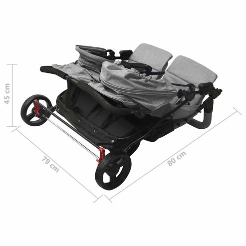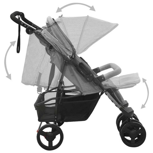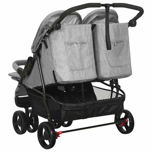 Mit diesem praktischen Zwillingswagen können Sie Ihre Kinder zum Spaziergang im Park, zum Einkaufen usw. mitnehmen. Der Kinderwagen für 2 Kinder verfügt über einen Stahlrahmen, der ihn robust und langlebig macht. Die Rückenlehne und die Fußstütze sind in mehreren Positionen verstellbar und bieten so hohen Komfort. Das runde Verdeck schützt Ihre Kinder vor direkter Sonneneinstrahlung. Darüber hinaus bietet die vordere Stoßstange optimale Sicherheit und verhindert das Herausfallen. Der mitgelieferte praktische Korb eignet sich ideal zur Aufbewahrung von Babyartikeln. Dieser Zwillingsbuggy lässt sich auch zusammenklappen, um eine einfache Lagerung und Transport zu gewährleisten. ** Farbe: Hellgrau ** Material: Stahl, Leinenstoff ** Abmessungen (aufgeklappt): 99 x 78 x 103 cm (B x T x H) ** Abmessungen (zusammengeklappt): 80 x 79 x 45 cm (B x T x H) ** Zusammenklappbar ** Verstellbarer Lenker ** Mit rundem Verdeck ** Mit Frontstoßstange ** Rückenlehne in mehrere Positionen verstellbar ** Verstellbare Fußstütze ** Mit Korb ** Max Belastbarkeit: 15 kg ** Zusammenbau erforderlich: Ja WARNUNG Lassen Sie Ihr Kind nie unbeaufsichtigt. Immer die Sicherheitsgurte benutzen. Dieses Produkt eignet sich nicht zum Laufen oder Skaten. Warnung. Dieses Produkt ist nicht zum Laufen oder Skaten geeignet. WARNUNG. Lass das Kind niemals unbeaufsichtigt. GPSR