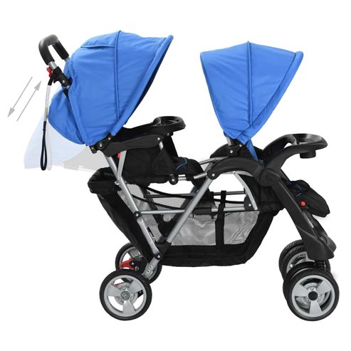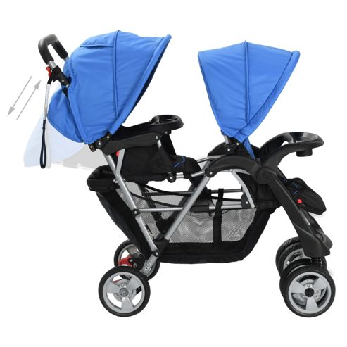 vidaXL Tandem-Kinderwagen Stahl Blau und Schwarz